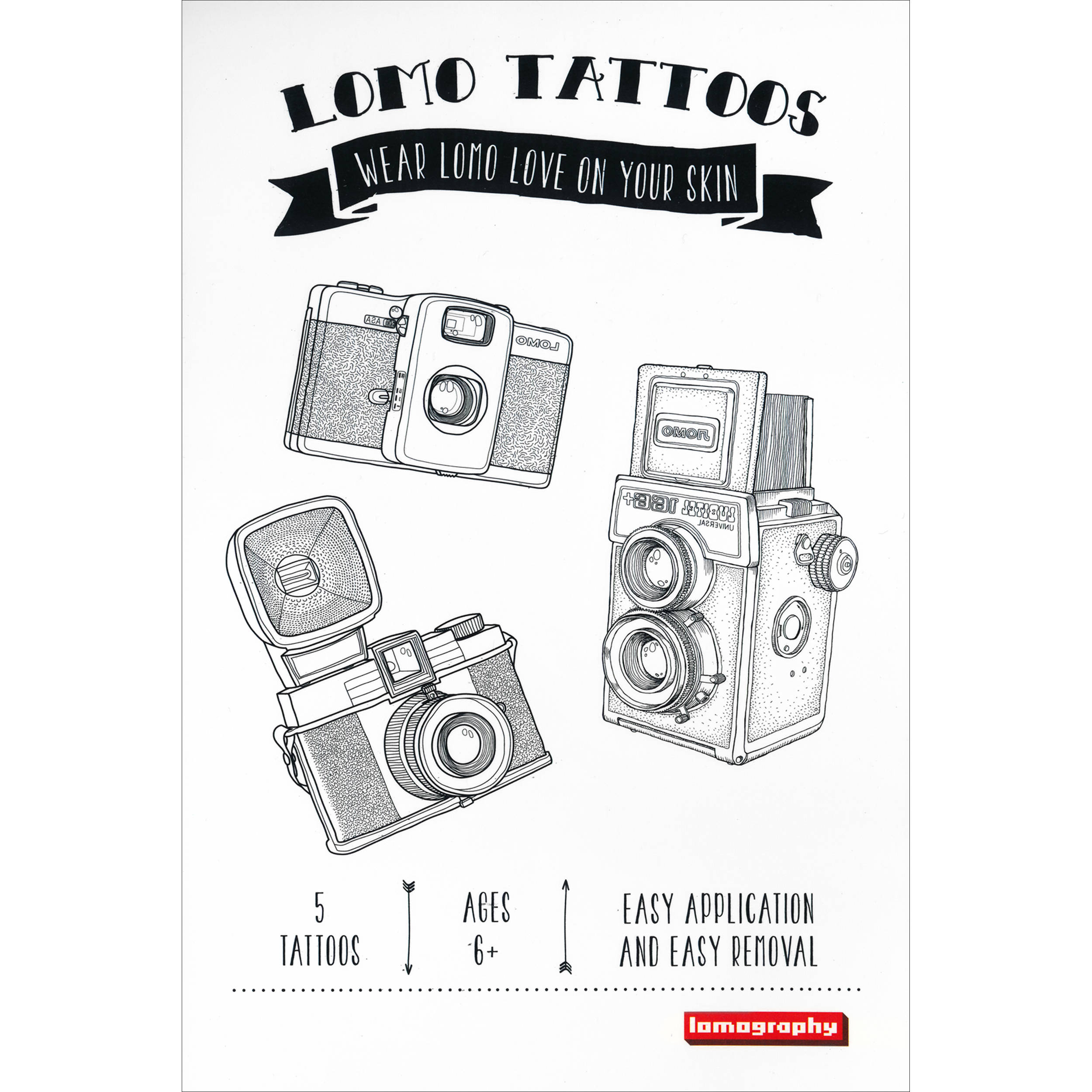 Lomography Temporary Tattoos 5 Pack Various Designs