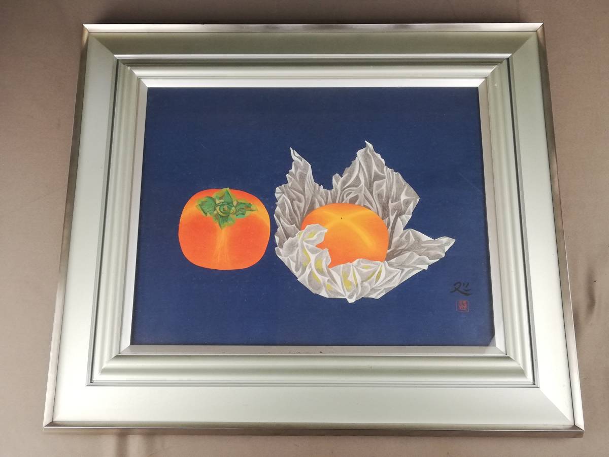 加山又造 静物 額装 多聞堂 /日本画家 絵画 版画 木版画 柿 カキ kaki 果物 の落札情報詳細| ヤフオク落札価格情報 オークフリー・スマートフォン版